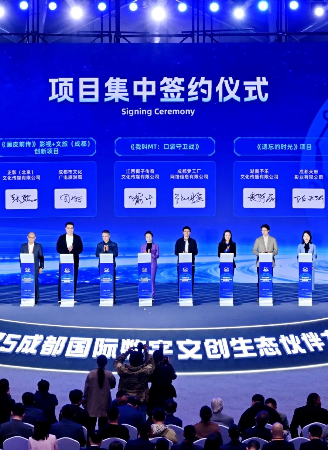 ????????金秋十月,,,,一場由“王者榮耀”、、、、“哪吒”等頂級IP 引爆的2025成都國際數字文創生態伙伴大會在科創生態島召開?!,F場,,,發布成都數字文創百億合作機會清單,,,成立國際數字文創產業聯盟,,,并集中簽約重點項目,,,,總金額近百億元。。大會聚焦影視動漫、、、、游戲電競等核心賽道,,,深入探討AIGC、、IP全球化等議題。。騰訊、、、、網易、、、、拳頭游戲、、三七互娛、、、、迪士尼、、、光線傳媒、、、、可可豆動畫、、一競技、、、游戲谷等游戲影視企業;星競威武、、AG、、、、狼隊等電競俱樂部共同參會,,攜手共建產業生態圈。。。。